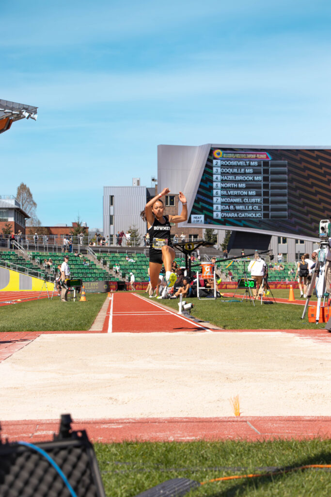 Breeanna Hollins has broken a fifteen year old school record in the triple jump. She has since broken that record two more times, increasing the distance by almost a foot and a half. She currently ranks first in three events in the Pacific league conference, triple jump, long jump and 100 meter hurdles. Breeanna ranks first in the state for 6A in the triple jump as well.